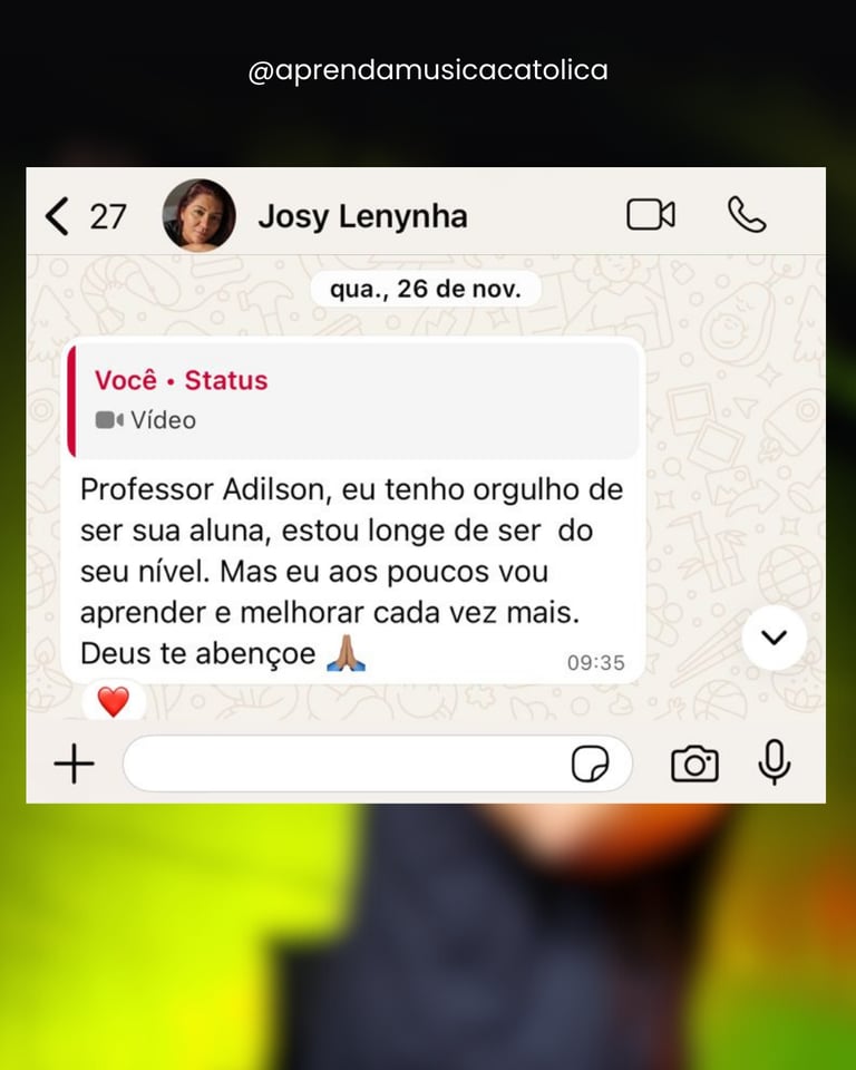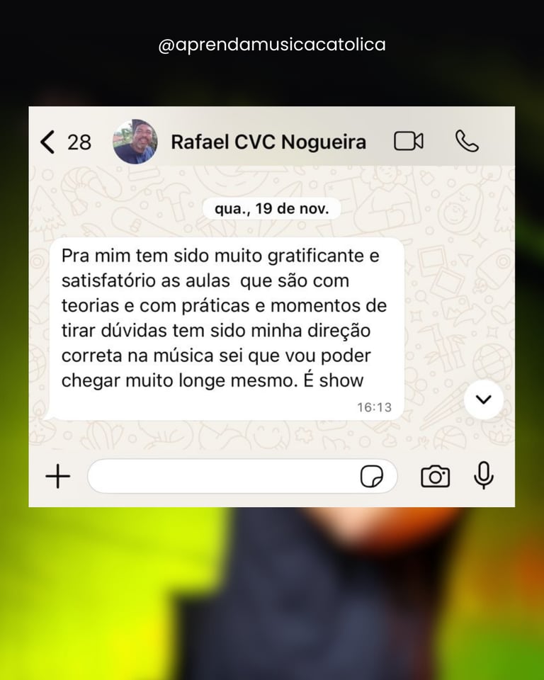 Sou cantor, compositor, professor de canto e ministro de música há mais de 18 anos, servindo em missas, grupos de oração e missões por todo o Brasil.